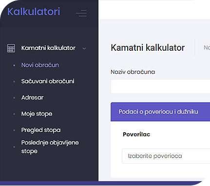 Namenjen izračunavanju kamata. Ovaj program nudi mogućnost izbora između tri načina, odnosno metoda obračuna zakonske zatezne kamate i kamate na neblagovremeno plaćene javne prihode.