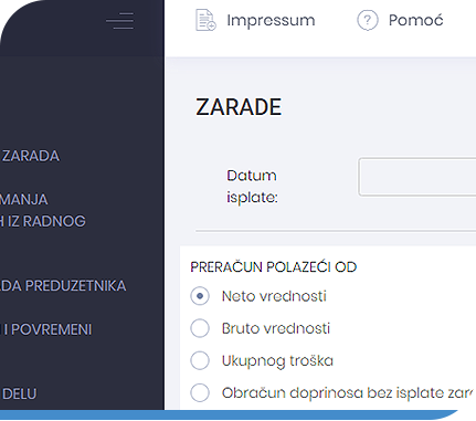 Kalkulator zarada i drugih primanja služi za određivanje visine poreskog opterećenja prilikom isplate zarada i drugih primanja fizičkim licima, kao i za preračunavanje sa neto na bruto ili bruto na neto iznosa prihoda fizičkih lica po raznim osnovama.